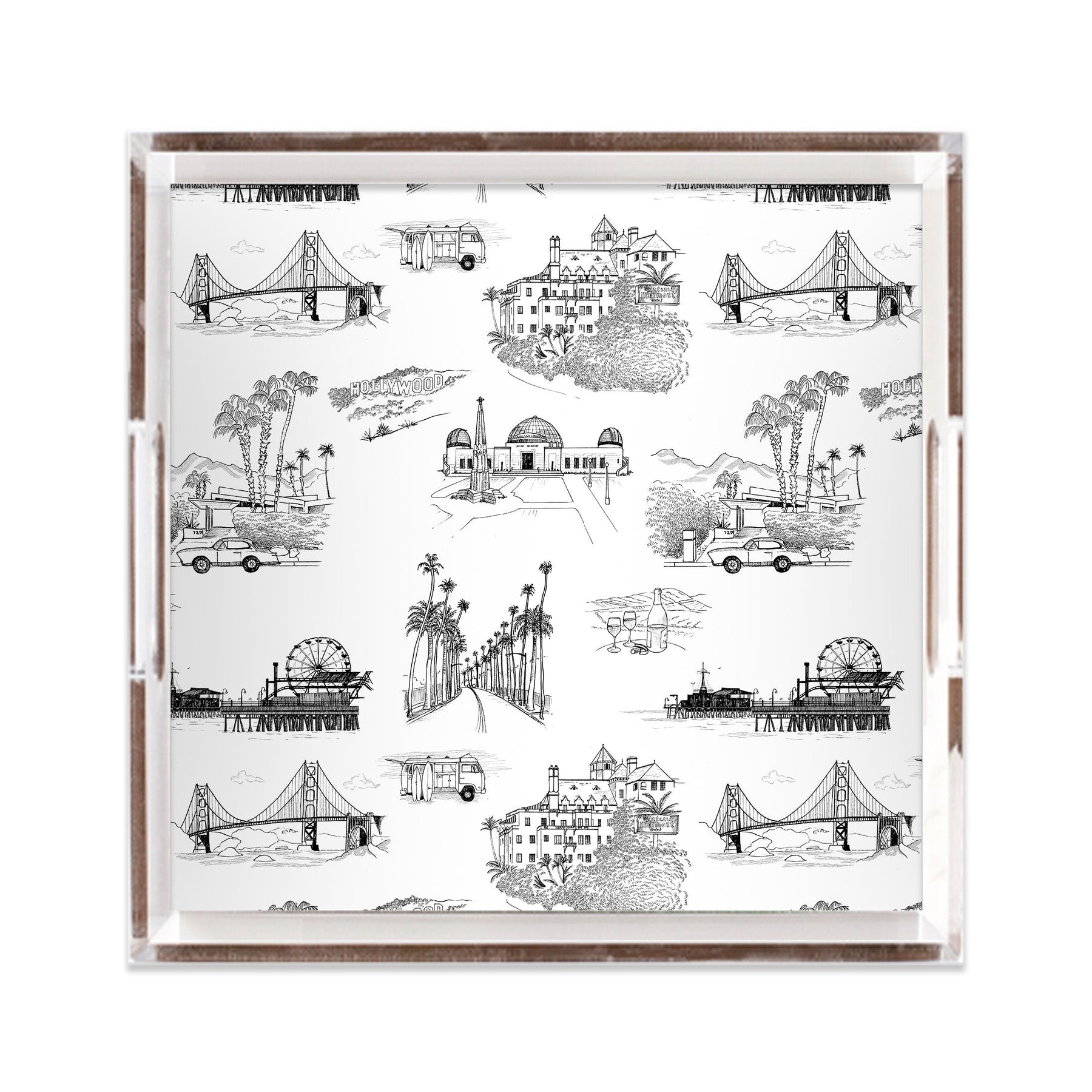 Road trip along the West Coast with our new hand-illustrated California Toile. Inspired by the golden state herself, this print features iconic landmarks all along the West Coast. With features like the Golden Gate Bridge, the wine country of Napa Valley, all the way to the southern coast with the Santa Monica Pier, the Hollywood Hills sign and Griffith Observatory overlooking the city of angels, this toile is a love letter to the beautiful state of California.