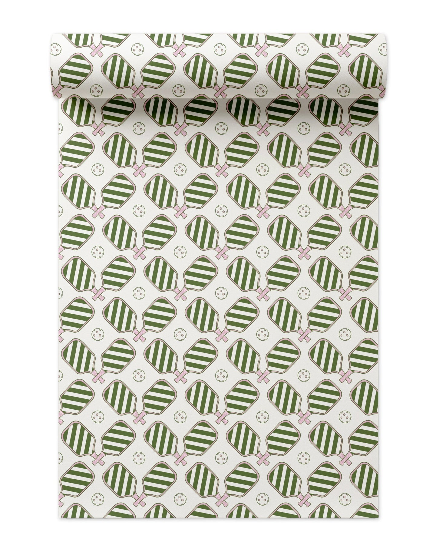 Pickleball Peel & Stick Wallpaper Peel & Stick Wallpaper Green / 24" x 144" Katie Kime Design