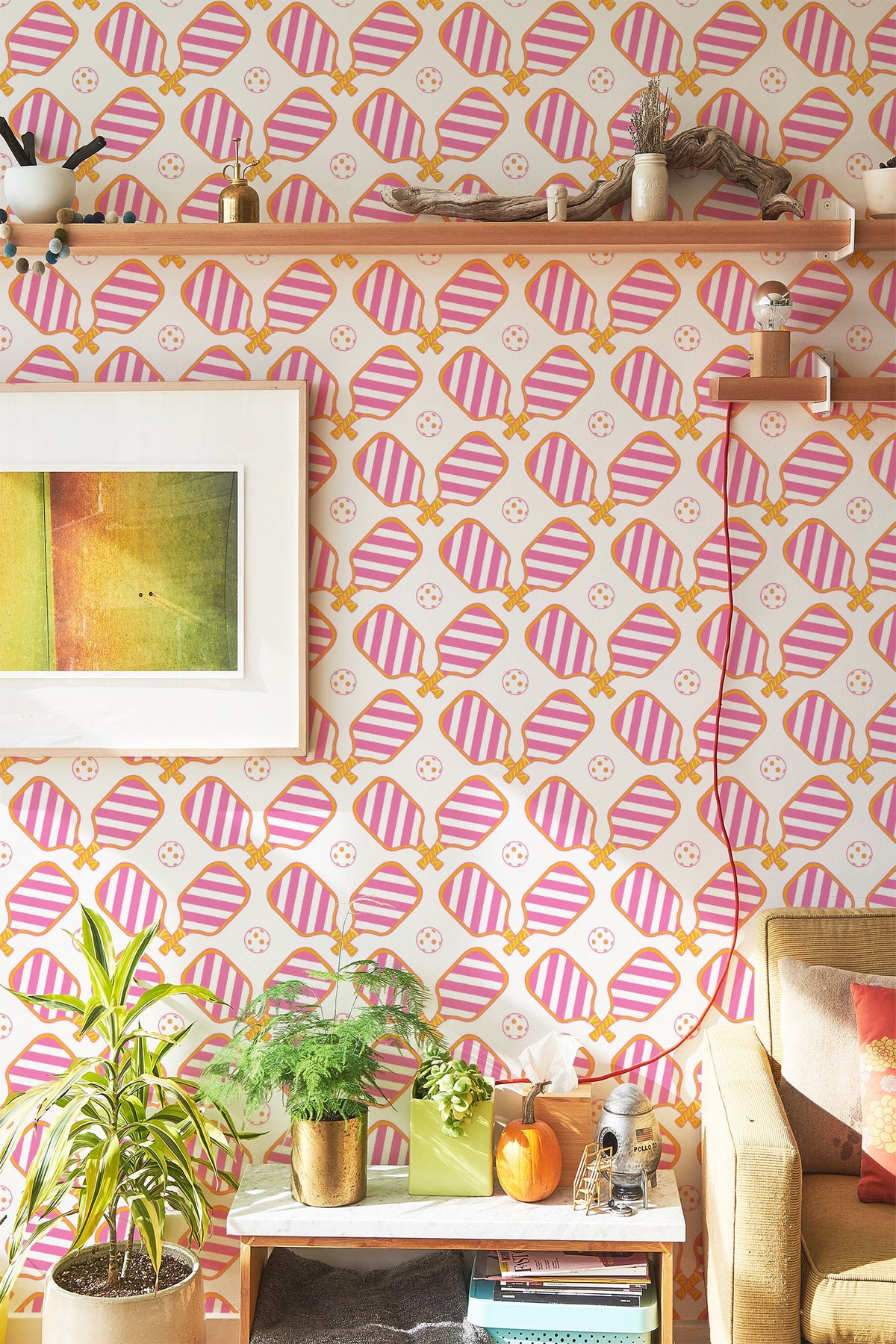Pickleball Peel & Stick Wallpaper Peel & Stick Wallpaper Pink / 24"x 48" Katie Kime Design