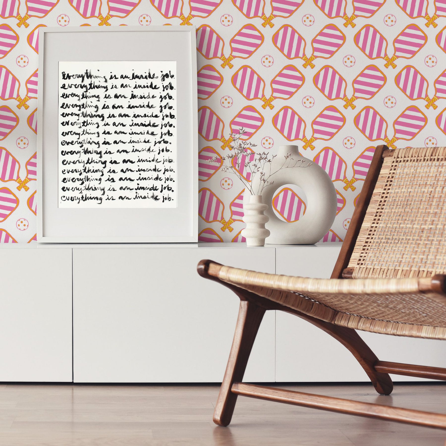 Pickleball Peel & Stick Wallpaper Peel & Stick Wallpaper Pink / 24" x 144" Katie Kime Design