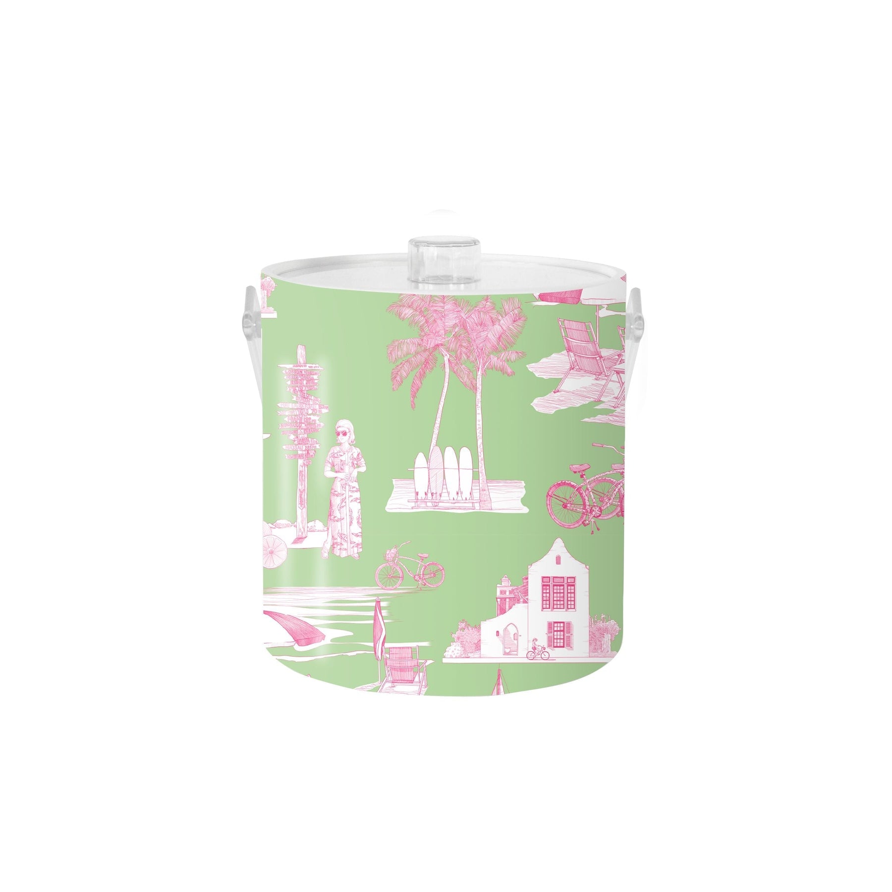 Florida Toile Ice Bucket Ice Bucket Green Pink / Lucite Katie Kime Design