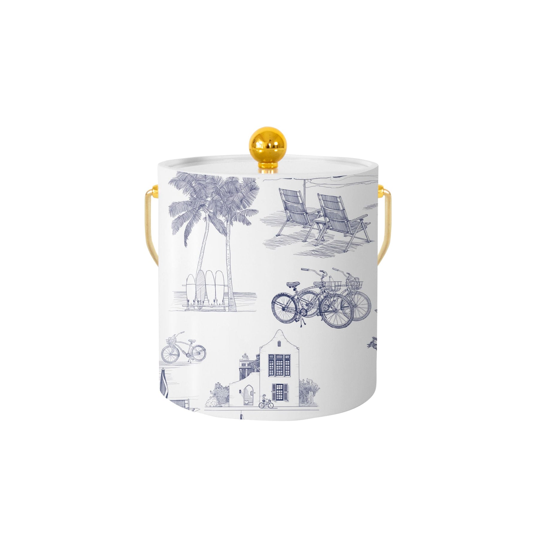 Florida Toile Ice Bucket Ice Bucket Navy / Gold Katie Kime Design