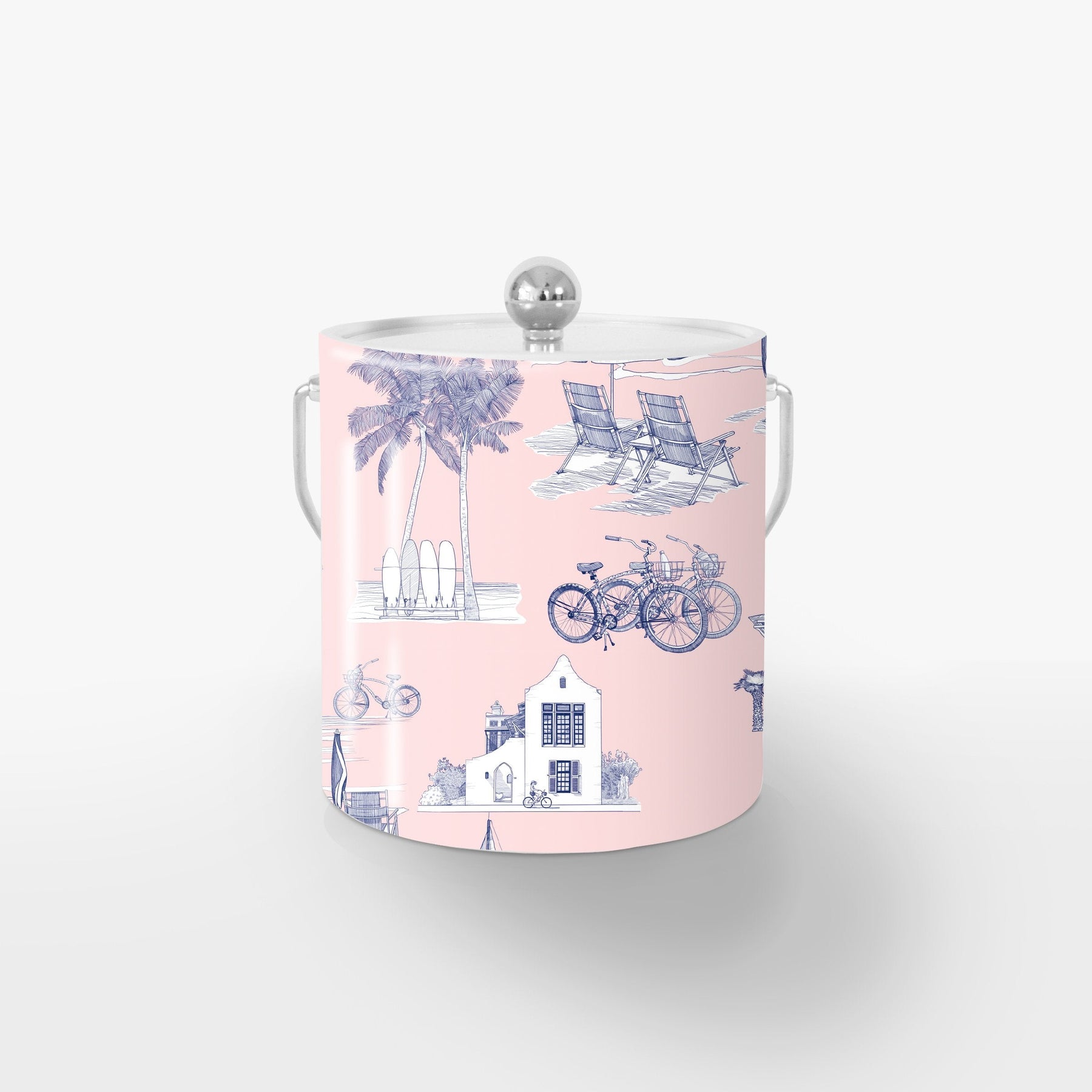 Florida Toile Ice Bucket Ice Bucket Pink Navy / Lucite Katie Kime Design
