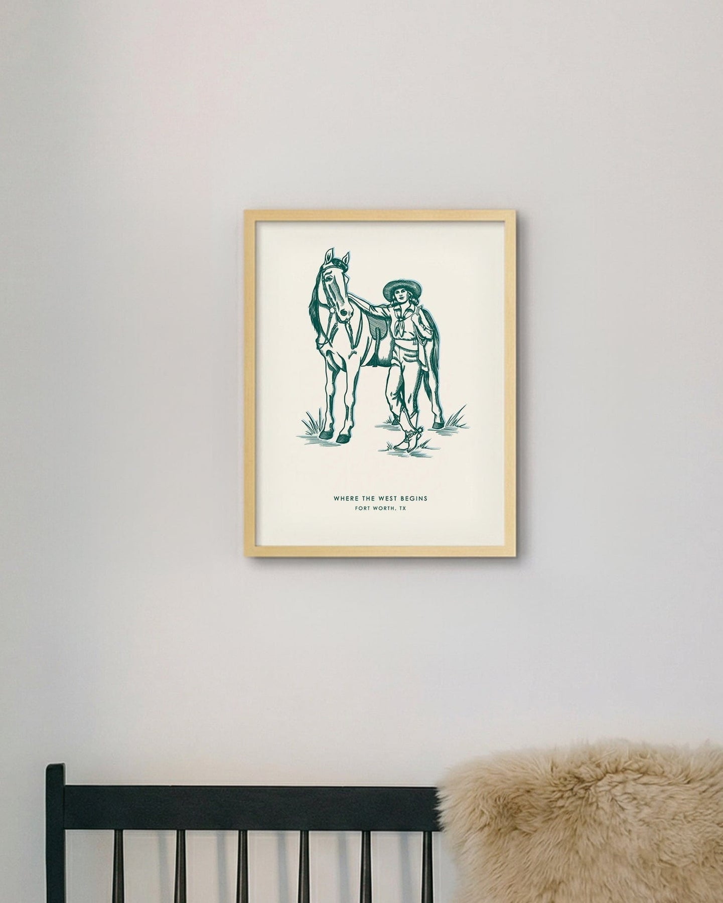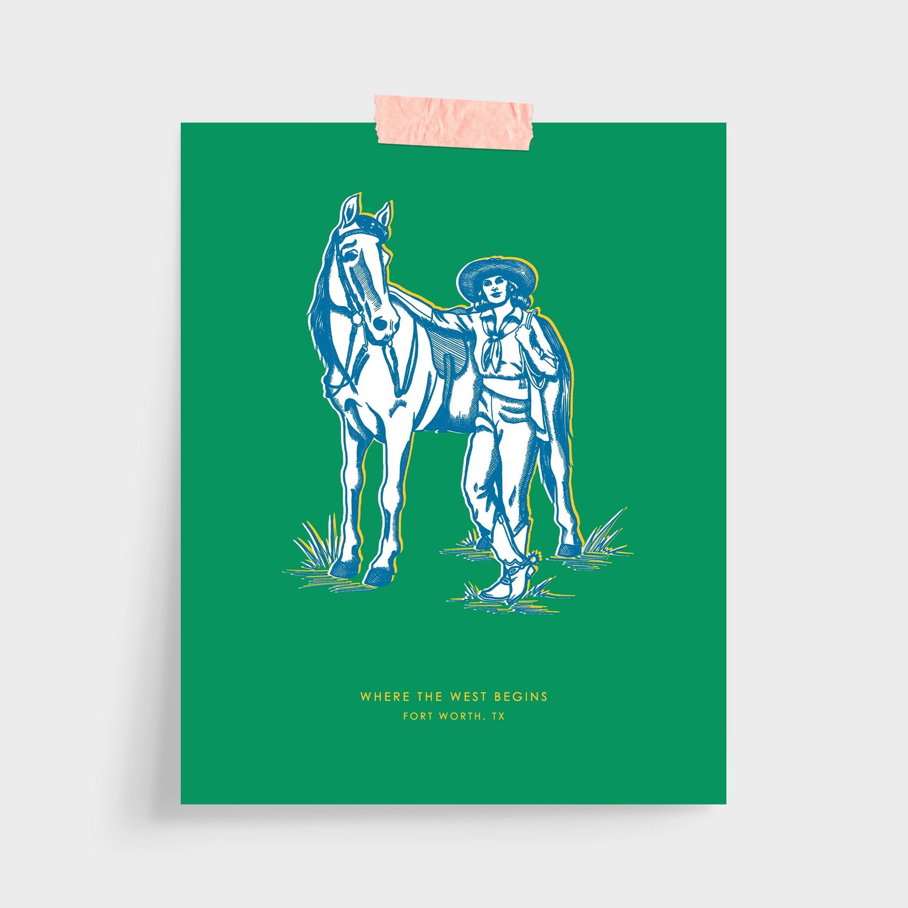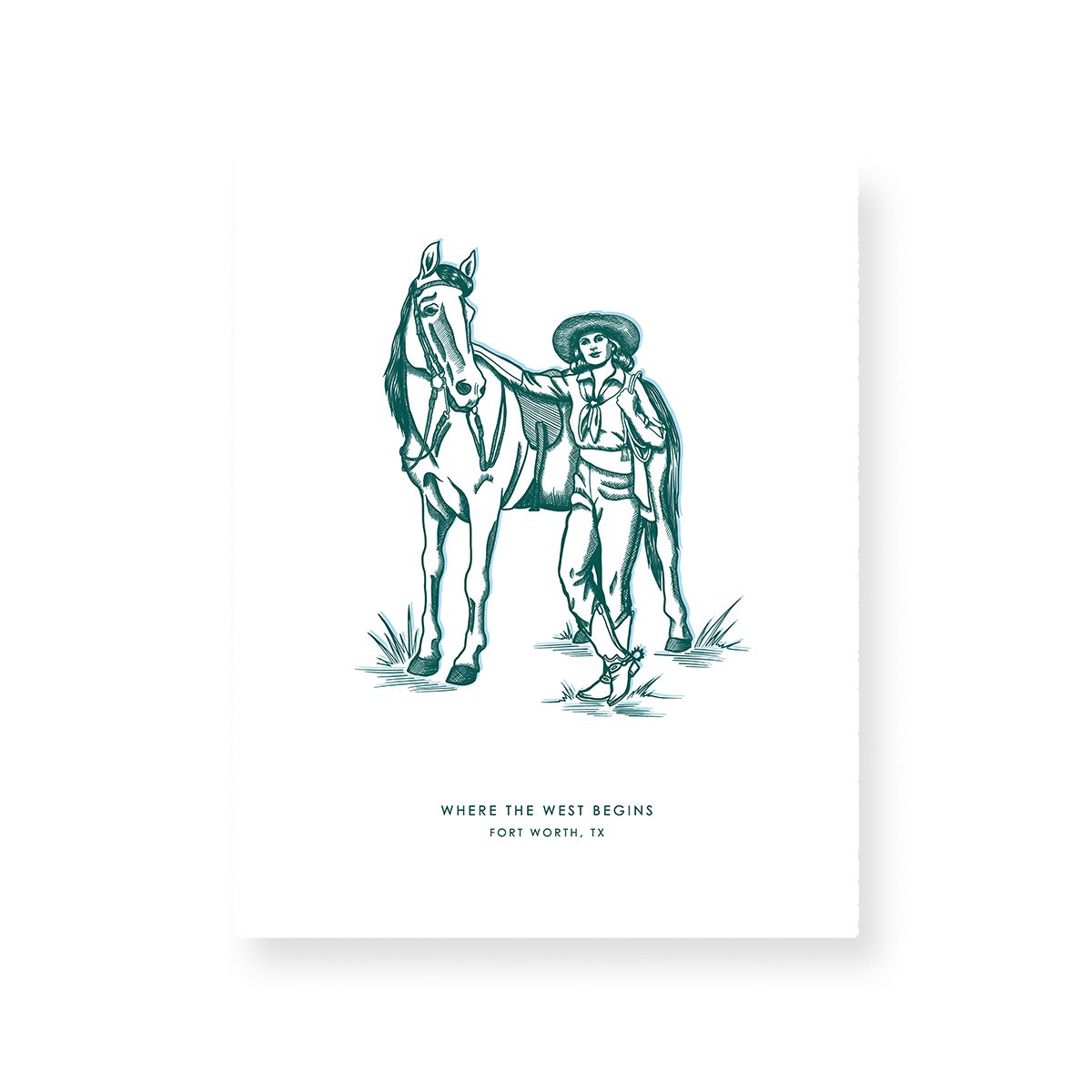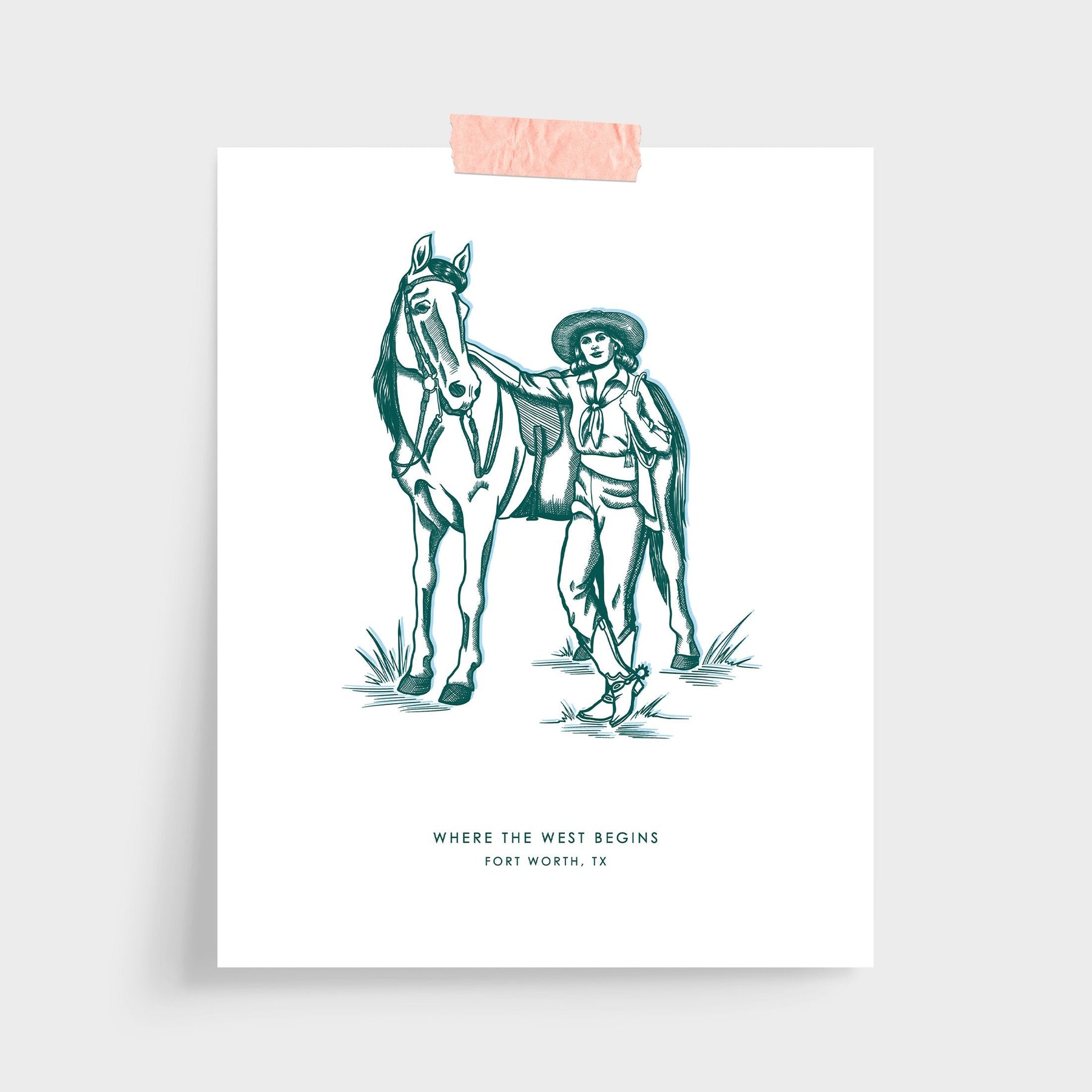 This hand-illustrated print is inspired by the true Fort Worth cowgirl.