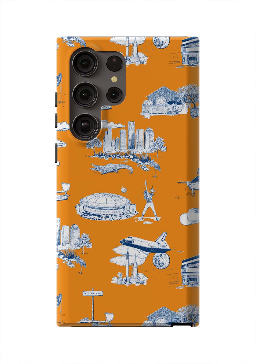 Houston Toile Samsung Phone Case Phone Case Orange Navy / Galaxy S24 Ultra / Tough Katie Kime Design