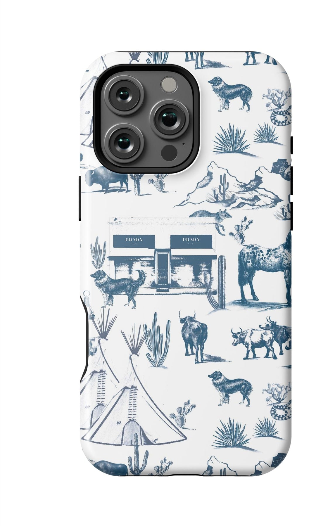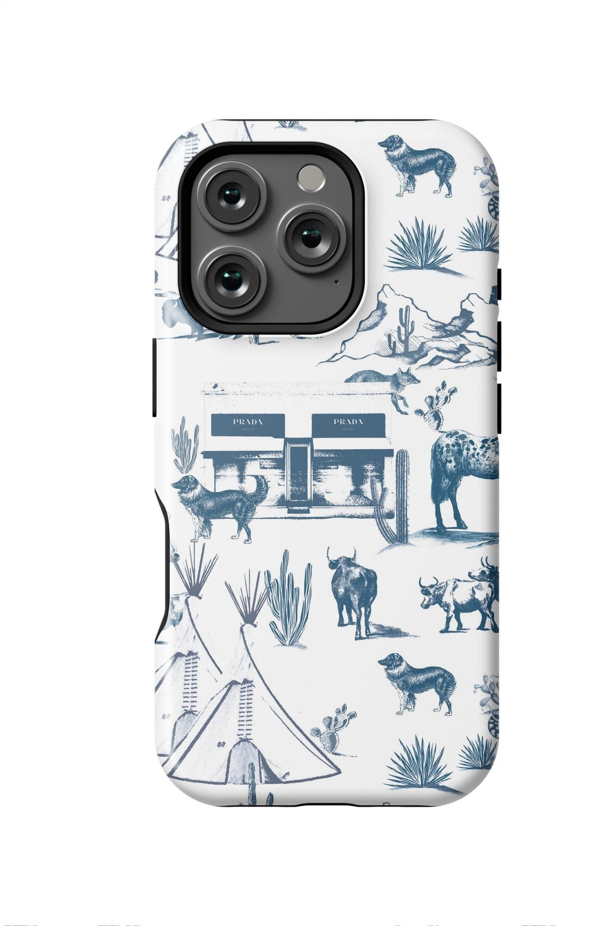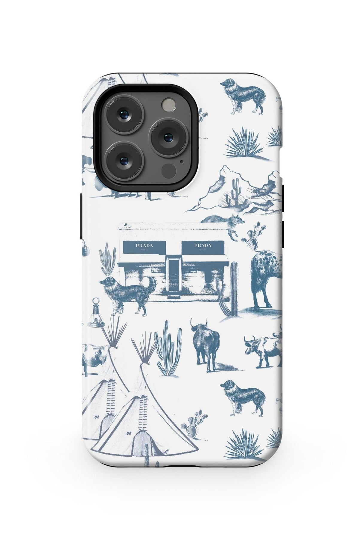 Marfa Toile iPhone Case Phone Case Navy / iPhone 16 Pro / Tough Katie Kime Design