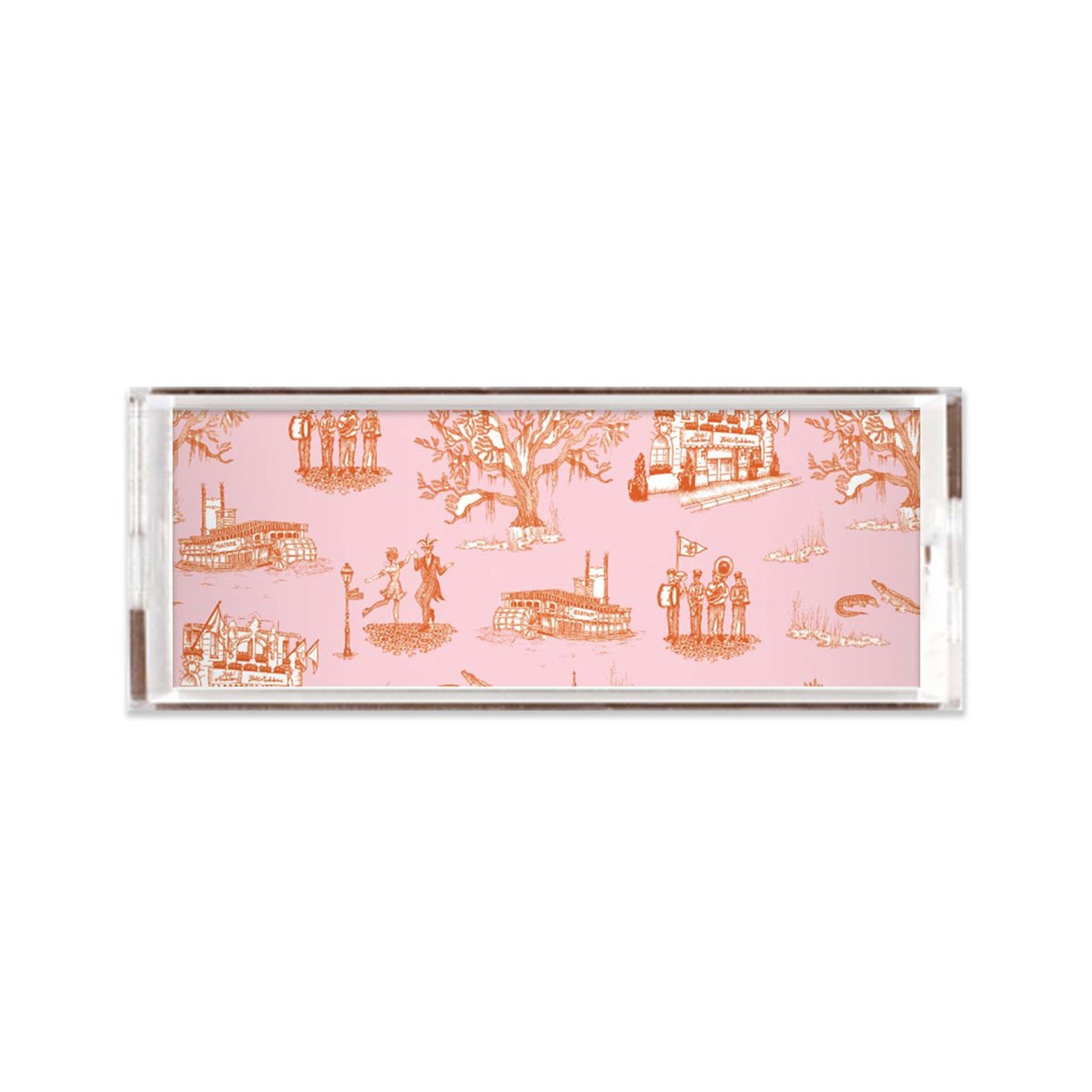 New Orleans Toile Lucite Tray Lucite Trays Orange Pink / 11x4 Katie Kime Design