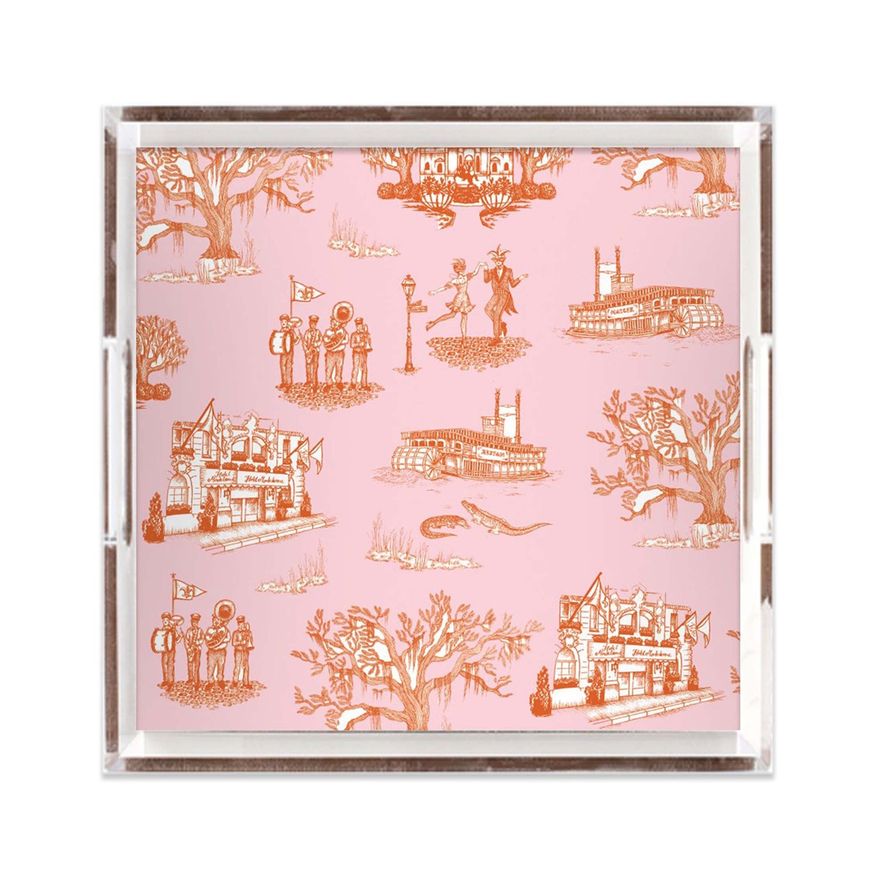 New Orleans Toile Lucite Tray Lucite Trays Orange Pink / 12x12 Katie Kime Design