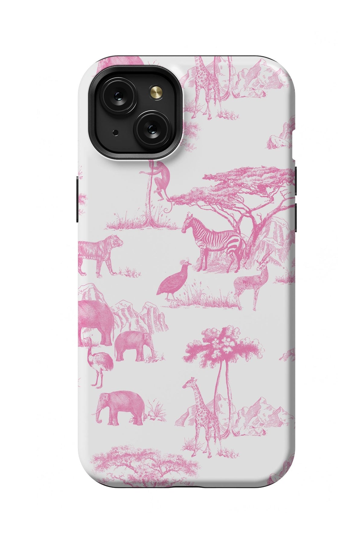Safari Toile iPhone Case Phone Case Pink / iPhone 15 Pro Max / Tough Katie Kime Design