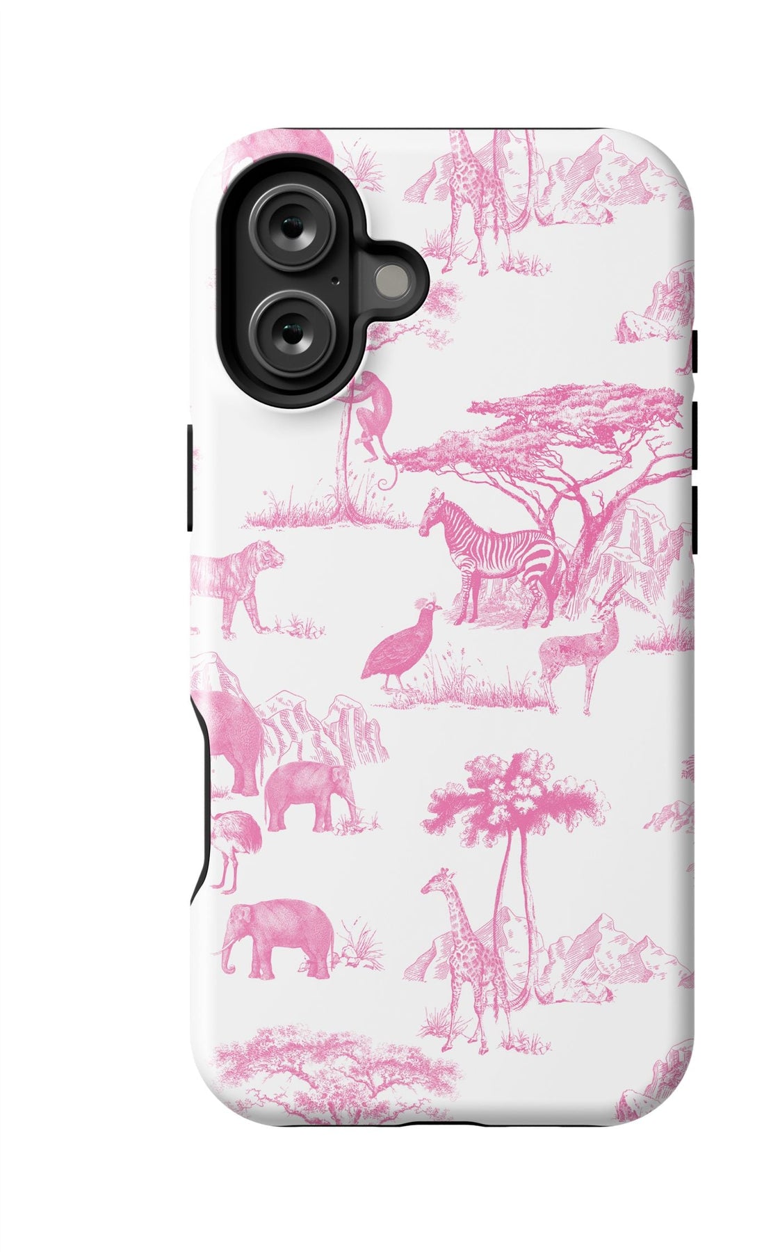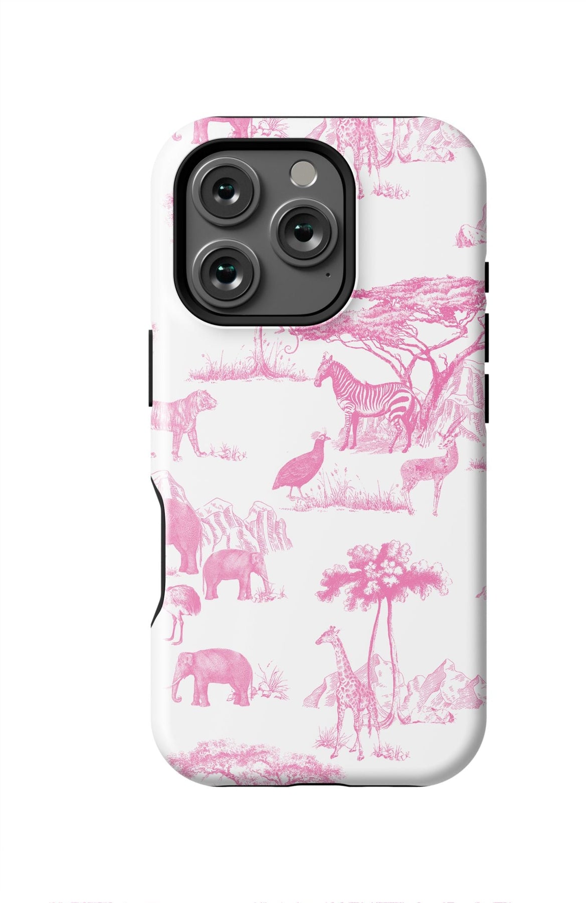Safari Toile iPhone Case Phone Case Pink / iPhone 16 Plus / Tough Katie Kime Design